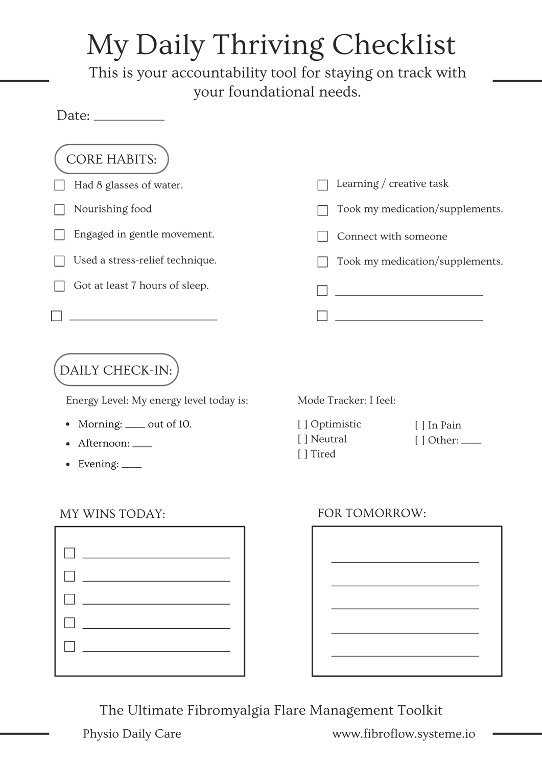"After years of trying medications, the daily thriving checklist helped me actually notice what triggers my pain. I track my victories & it keeps me motivated—even on tough weeks."