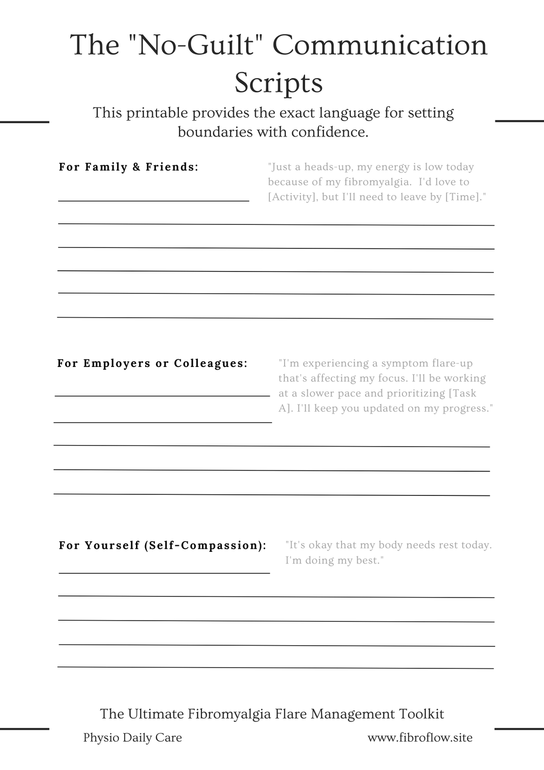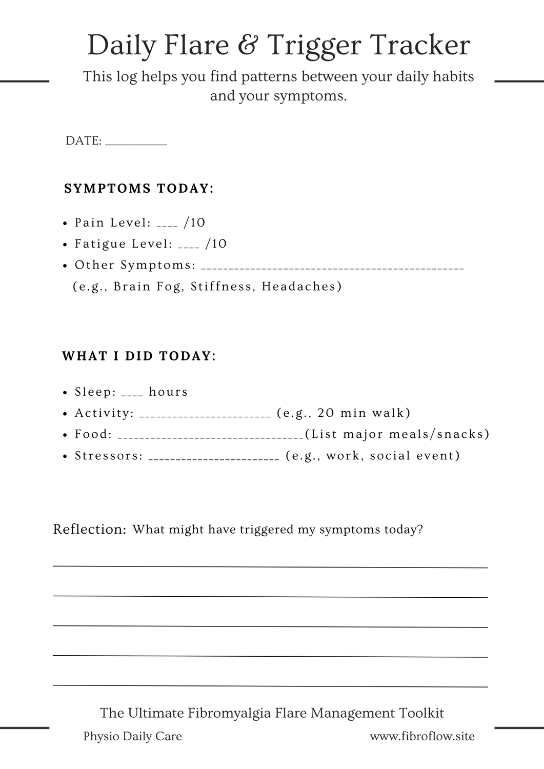 Download once and use anytime, on any device or printed at home. You can revisit the toolkit whenever your needs change, making it a reliable companion on your fibromyalgia journey.